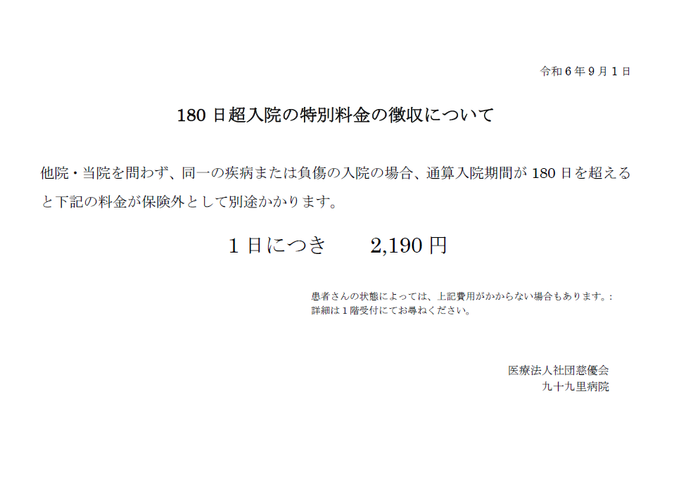 180日超入院の特別料金の徴収について