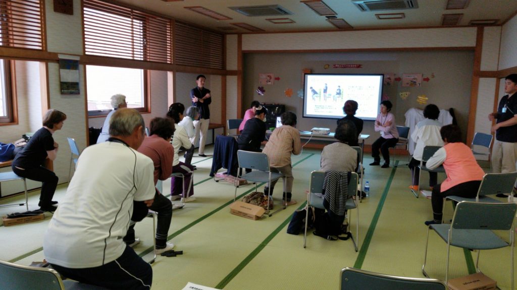 11月9日(金)にいすみ市ふれあい会館において、介護予防ボランティア勉強会を開催致しました。昨年度から参加されている方も多く来られており、18名のボランティアの方々が集まりました。今回はいすみ市で働かれているエスポワール大原の理学療法士である渡邉先生と矢野先生が中心となってボランティアの方々に体操の留意点や効果についての説明をして頂きました。その際にボランティアの方々が数名ずつ前に出ていただいて、注意点の説明をして頂き実際の集いの場での体操指導を体験していただきました。ボランティアの方々の中には住民の前に立って体操の指導をするのはまだ不安という意見も多くあったためとても良い練習になったのではないかと感じました。