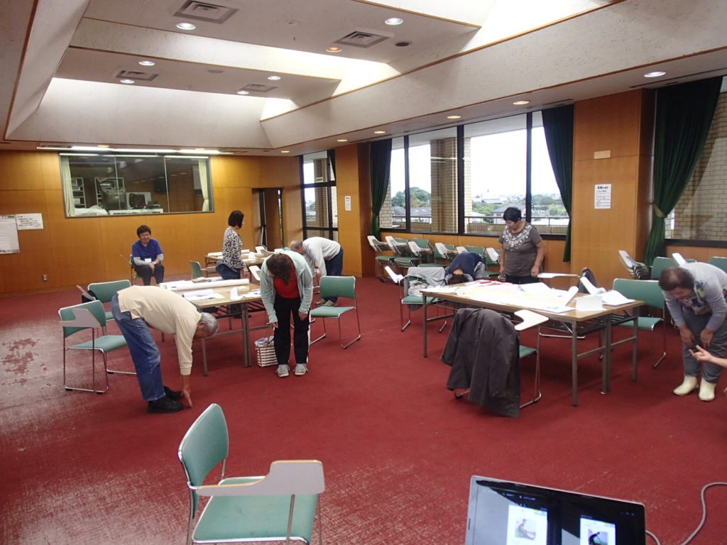 平成29年9月28日(木)、10月13日(金)に、九十九里町の活性化プログラムとして、つくも学遊館と九十九里中央公民館で介護予防ボランティア21名を対象とした講演を実施させて頂きました。参加された方の中には以前私達が九十九里町内で行ってきた体操教室などに参加して頂いた方々がいらっしゃいました。当院スタッフの顔を覚えて頂いたようで気さくに声を掛けて頂く場面もあり、少しずつ地域の方々と繋がっていると実感しました。