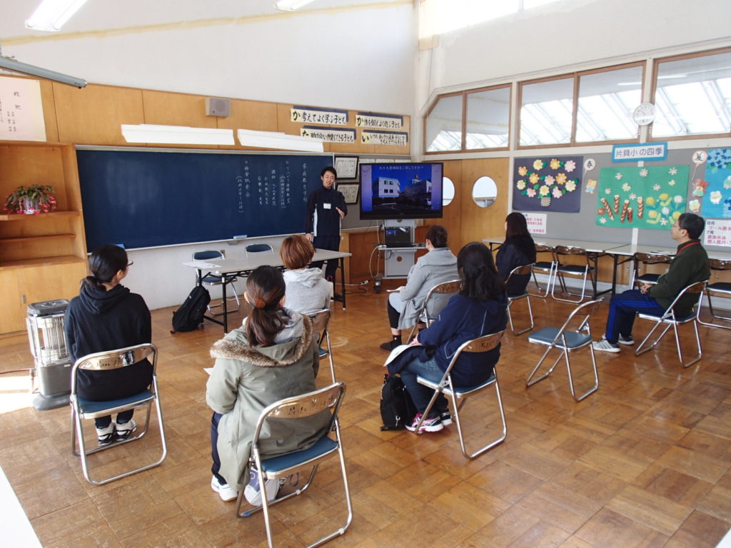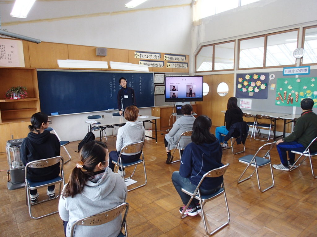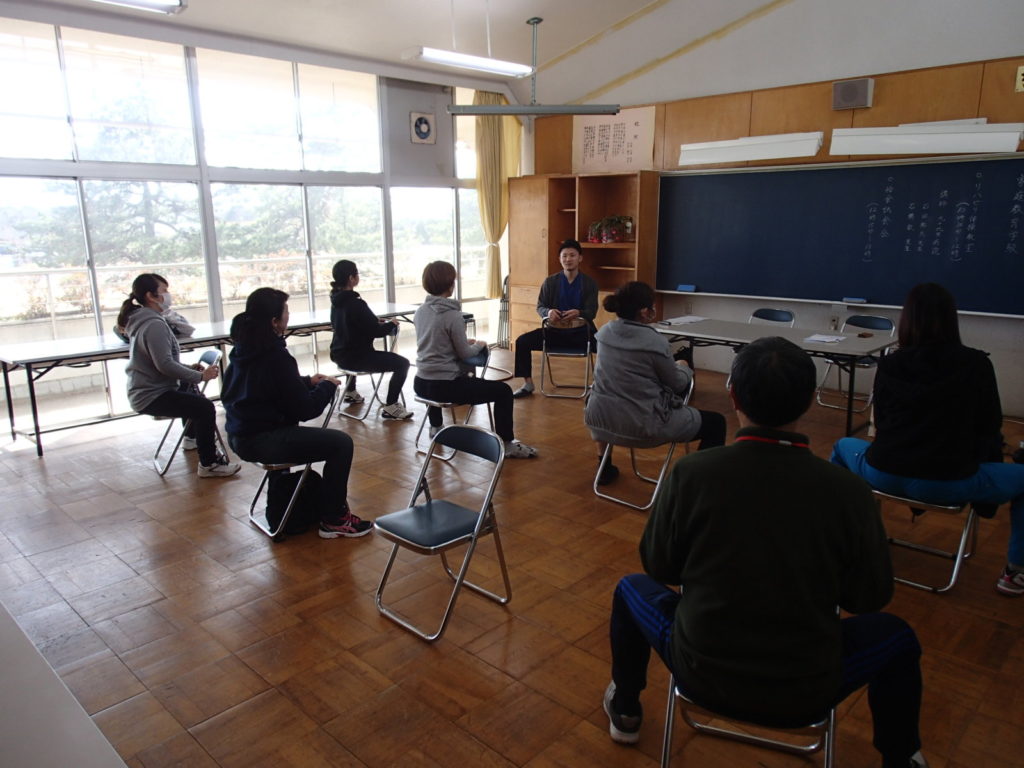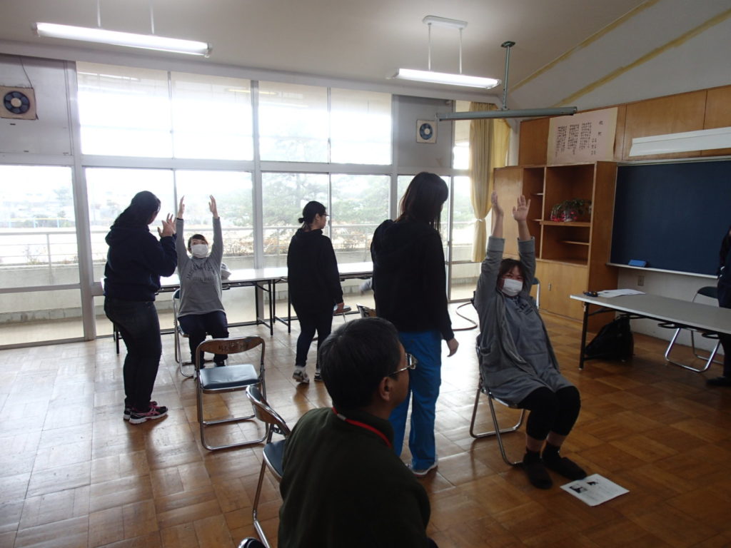 今回は当院のすぐ横にある片貝小学校にお招きいただき、肩こり・腰痛予防を主に美容面もふまえてお話しさせて頂きました。今回のコンセプトは“普段忙しい主婦の方々でも簡単に短時間で出来る体操”。日常を家事で追われる主婦の方々はなかなかこのような体操に時間を避ける余裕はないであろう…、そんなこともあり座って・寝て出来る簡単で時間を取らない体操を提案させて頂きました。少人数で実施させていただいたため、コミュニケーションも取りやすく和やかな雰囲気の中で実施させて頂きました。やはり日々忙しい中、家族のために体のことなんてそっちのけで働かれているため肩こり・腰痛に悩まれるお母様方は多い印象を受けました。まずは姿勢から変えていきましょう!!そこから始まった姿勢チェック。なかなか自分がどのような姿勢でいるか、まじまじと見る機会はないため皆さん自分の姿勢に興味津々の印象を受けました。自分の姿勢がある程度わかったところで、次は姿勢ごとの体操を実施。身体の変化を感じていただきながら痛みに合わせて体操を進めさせて頂きました。最後は皆さんご存知の音楽に合わせて笑いあり、時には真剣に体操実施!!今まで実施したものを網羅しシンプルになったものをお伝えしました。