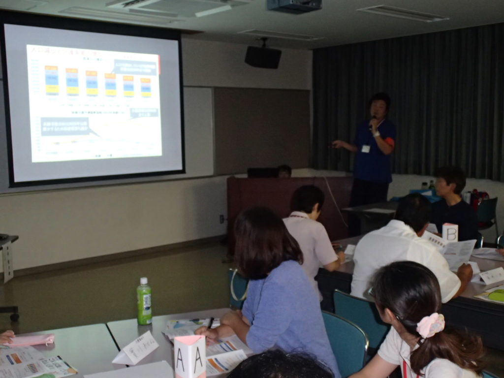 9月14日、つくも学遊館にて行われた九十九里町地域推進ケア会議に参加させていただきました。私達は「健康」をテーマとし、九十九里町の人口推移や高齢化率、社会保障の問題などに触れていきながら健康であり続けることの意義をお伝えしました。また、健康な身体を保つための腰痛予防・膝痛予防・認知症予防に効果的な体操も紹介し、参加者の皆様と体操を行いながら実施前後での身体変化を感じていただきました。シンプルな体操でもしっかりとポイントを理解し実施することで、体操後は「身体が柔らかくなった!」など驚きの声もあがっていました!今回の参加者は実際にご高齢の方と接する機会の多いケアマネジャー・民生委員の方達だったので、今回伝えた内容が日々の仕事や活動のお役に立てるようでしたら幸いです。