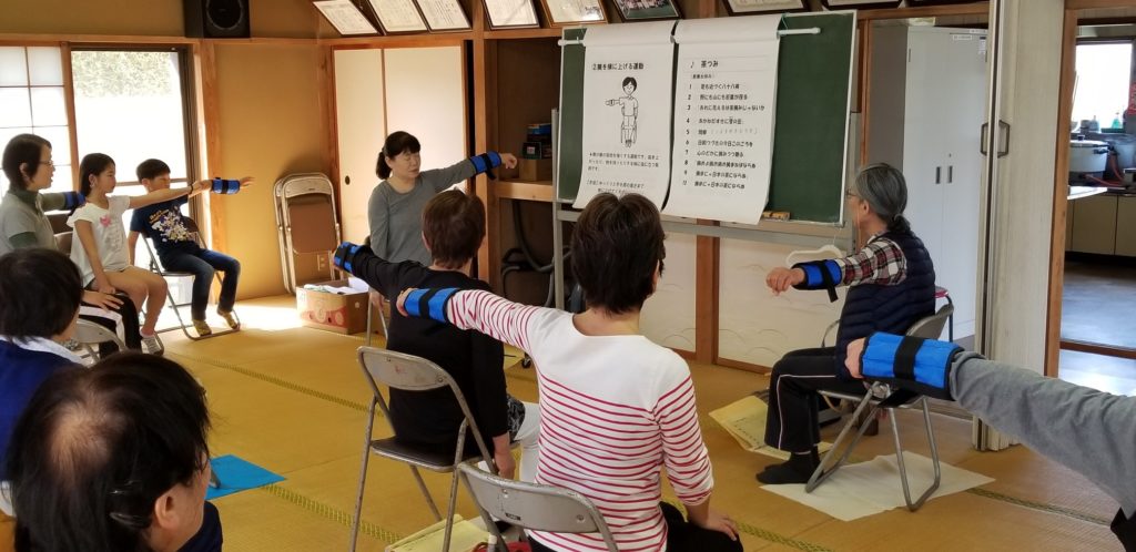 昨年の6月からお邪魔させて頂いている横芝光町栗山地区に久しぶりに訪問させて頂き、体力測定の結果返却と体操の指導をさせて頂きました。集まっている住民の方々は健康意識が高く、体操に関してもわかりづらいところがあれば積極的に質問して下さるとても活気ある集いの場です。今回は住民の方のお孫さんも春休み中のため、一緒に参加されており自然と会話も増えるようなとても良い環境になっていました。