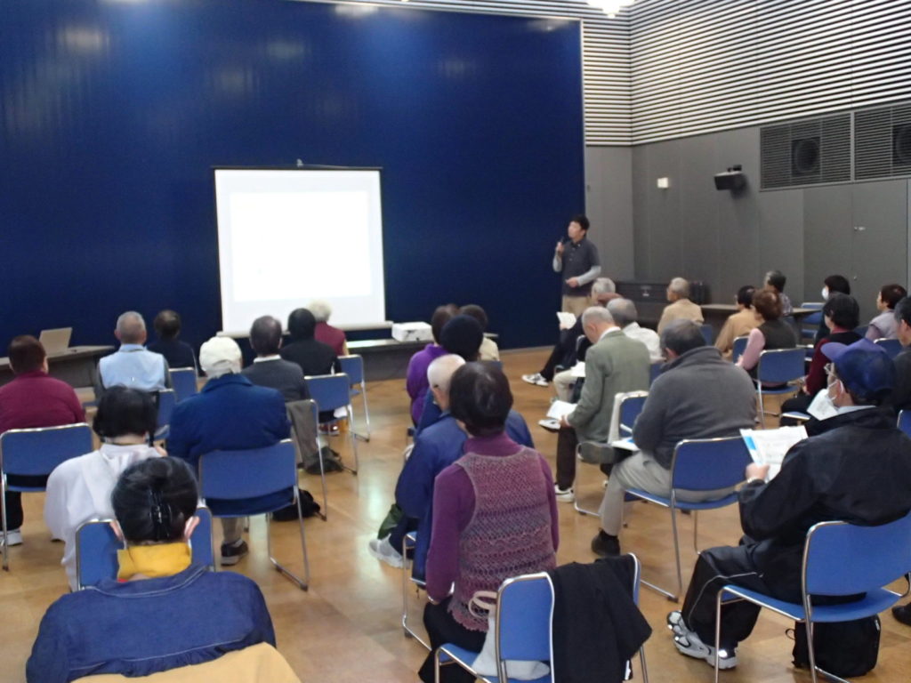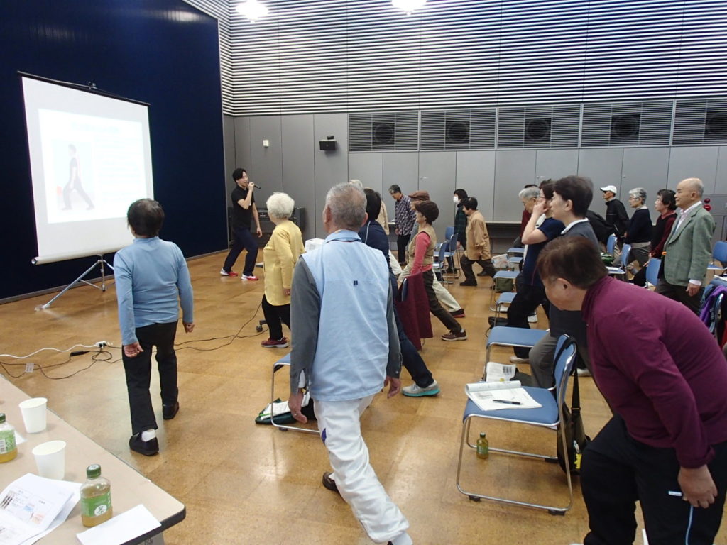 11月12日に東金市で行われた「ロコモティブシンドローム予防講演会」に講師として招かれ、講演をさせて頂きました。内容としては、地域リハビリテーション活動支援事業について説明させて頂き、その後、ロコモティブシンドロームについて概要と予防・改善についてお話しと運動を交えながら行いました。「ロコモ」ということもあり、今回は歩行に着目して行いました。今回、約40名前後と多くの方々に参加して頂き、体操も積極的に行ってくれ楽しい雰囲気の中講演をすることが出来ました。また、質問もたくさんいただき、皆様の健康に対する意識の高さを伺うことが出来ました。「歩く」ことは私達が日々行っていることで、歩き方が良くなるだけで痛みの予防・改善や動くことへの意欲の向上にもなるので今後も専門職として皆様のお手伝いをしていければと思います。