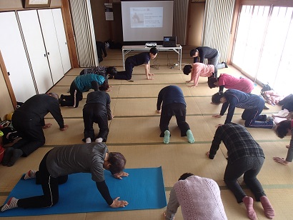 1月21日(月)今回は東金市にある正気公民館で週1回活動している、“正気からだ元気塾”の方々に腰痛・膝痛予防の講演をさせていただきました。日頃から運動習慣のある方が多く、立位体前屈を行った際も手のひらがペタッと! 床につく方もいらっしゃいました。またストレッチ指導で終了の予定でしたが、ご自宅でもできる筋力トレーニング指導や質疑応答の時間を多く取ることができ、短い時間ではありましたが盛り沢山の内容になりました。参加者の皆様、私達も含めてとても有意義な時間になったのではないかと思います。