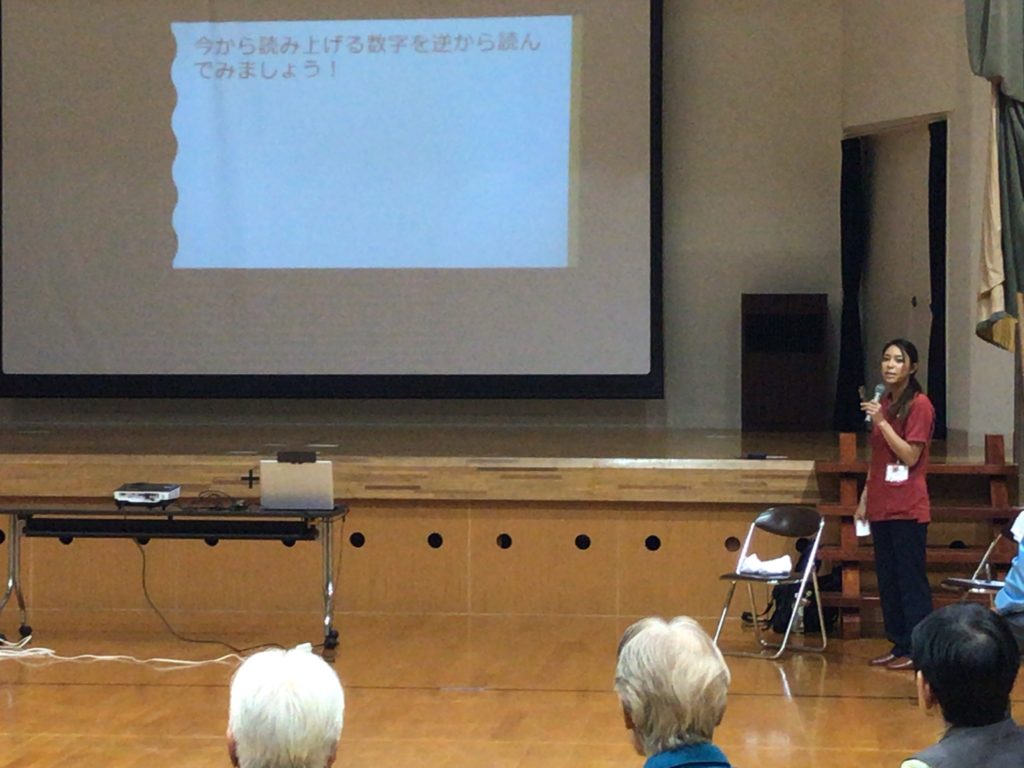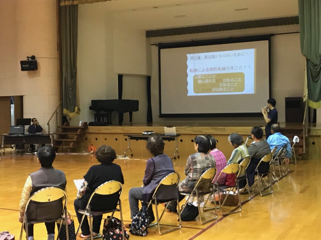 平成30年10月3日、松尾ふれあい館で開催されているふれあいサロンにお招きいただき、『松尾若返り講座』という形で転倒予防、認知症予防についての講演をさせていただきました。今回は37名の方々にご参加いただき運動を実践。肩・腰・膝などの痛み予防、尿失禁予防、認知用予防と皆様特に気にされる部分ともあって熱心に運動を行って頂いたと同時に改めて運動の重要性を再認識して頂く機会となったかと存じます。実際に痛みを抱え生活をされている方々に是非この運動を実践して頂き個々の日常生活が豊かになることこそ、松尾町全体の健康寿命が伸びていくこと事につながっていくのではないかと考えます。 今回、このような機会を設けていただいた松尾社会福祉協議会の皆様、住民の皆様、本日は貴重なこのような機会を頂き大変ありがとうございました。