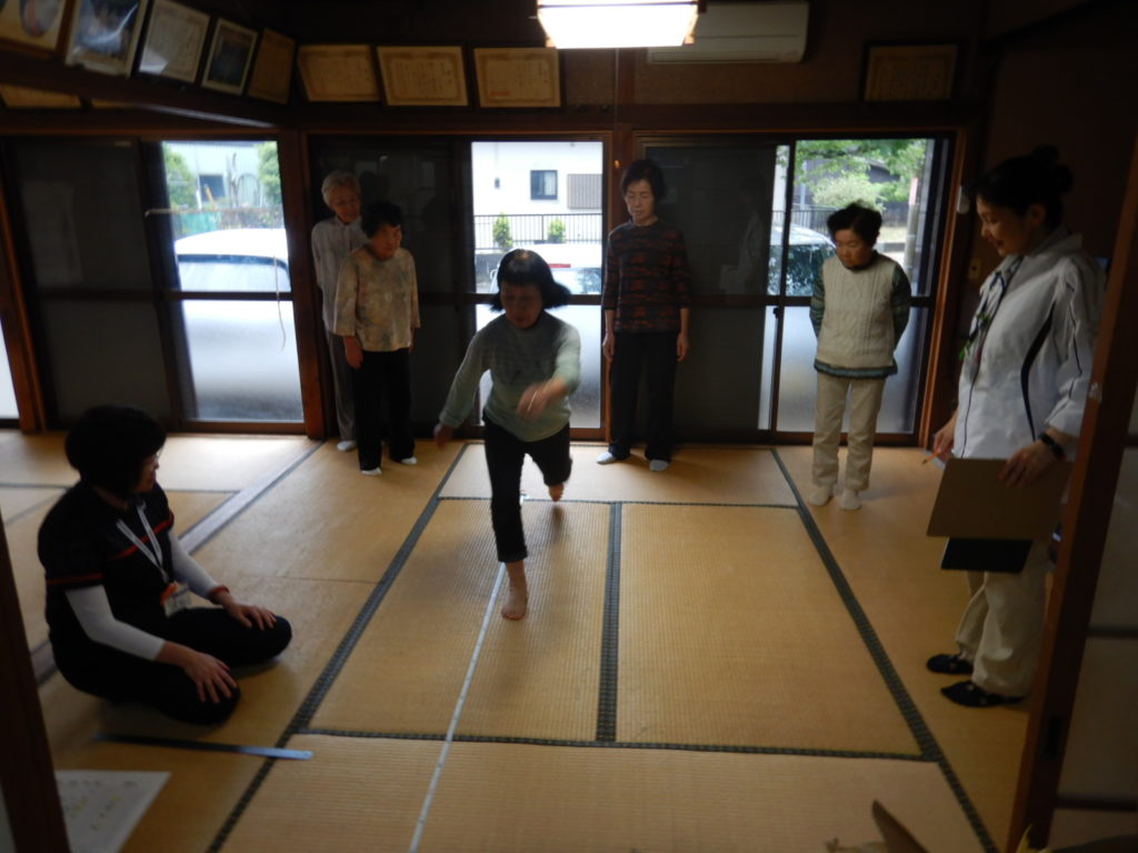 体力測定が始まると皆様活き活きとした表情で、前回の記録を超えようと必死に頑張っていました。記録に伸び悩むと「先生!何かコツはないですか?」と質問を受けました。アドバイスをした後は、記録が伸びた方がいらっしゃいました。体操だけでなく身体の使い方を指導するのも我々の役目であると改めて感じました。また記録だけではなく、「気がついたら立って靴下が履けるようになりました」と、日常生活での変化が見られる方もいました。他の方々も自分の事のように喜んでおり、拍手を送っているのがとても印象に残っています。今後も皆さんで協力し合い頑張って頂きたいと思います。