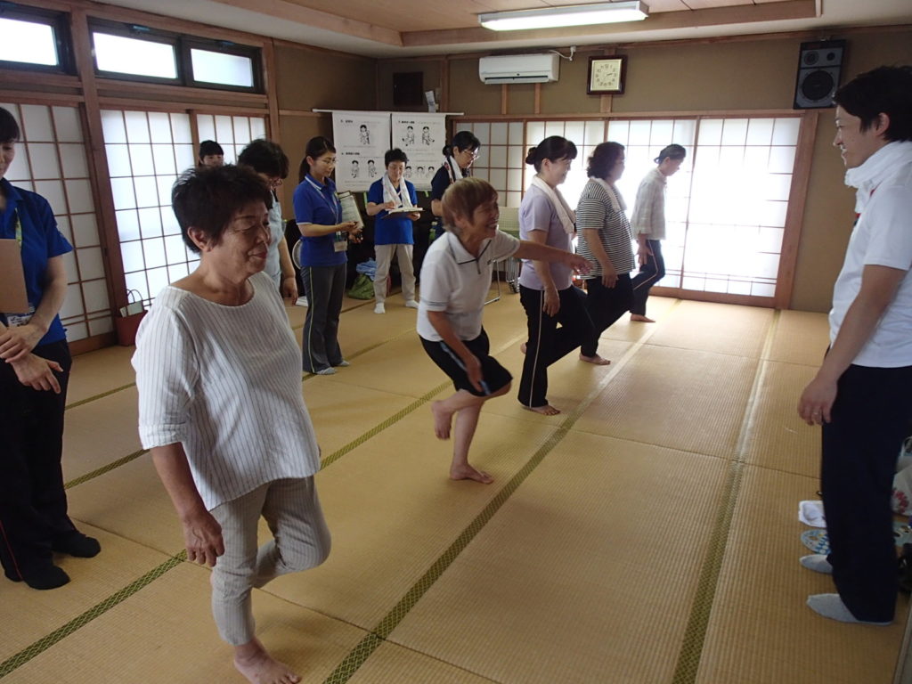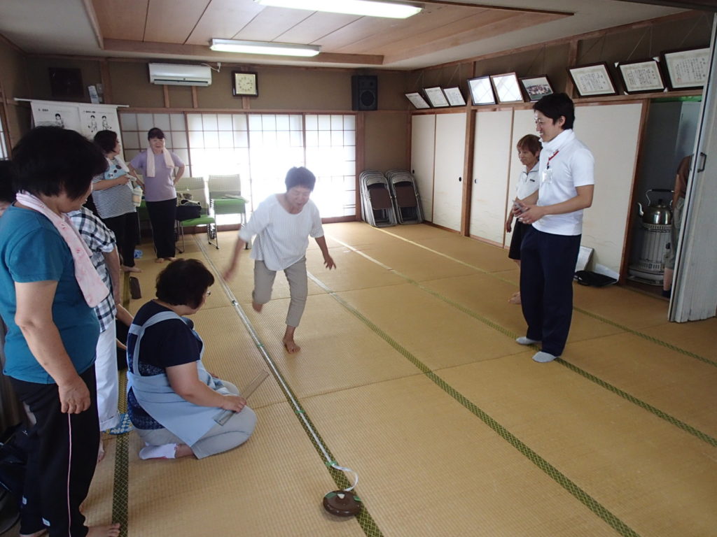 8月9日と9月25日、横芝光町にて実施されている『キラリ若返り運動』参加者の方々、保健師の方々、看護師の方と共に体力測定を実施しました。60代から90代と幅広い多くの方々にご参加いただきました。 「3ヶ月前と変わるかなぁ…」そんな不安と希望を胸に始まった体力測定。参加いただいた方は少しでも良くなりたいと言わんばかりに熱心に取り組んで頂きました。やはり盛り上がったのは歩行速度と片足立ち時間の測定です。みんなより早く歩きたい、みんなより長く立っていたい、そんな競争心が暑さを吹き飛ばし楽しく体力測定を実施出来ました。切磋琢磨とはこの事!!みんなで行うことの意味はここにあると思われます!