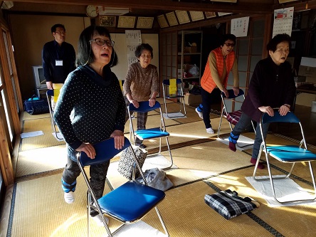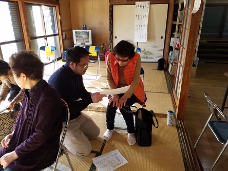令和元年12月23日(月)に、9日に行われた体力測定の結果返却へ上町青年館に伺いました。本日参加された4名の方に結果を返却させていただきました。体操を継続している成果が結果に現れておりました。実際の体操の場面も拝見して、より効果的な体操となるよう少しアドバイスもさせていただきました。