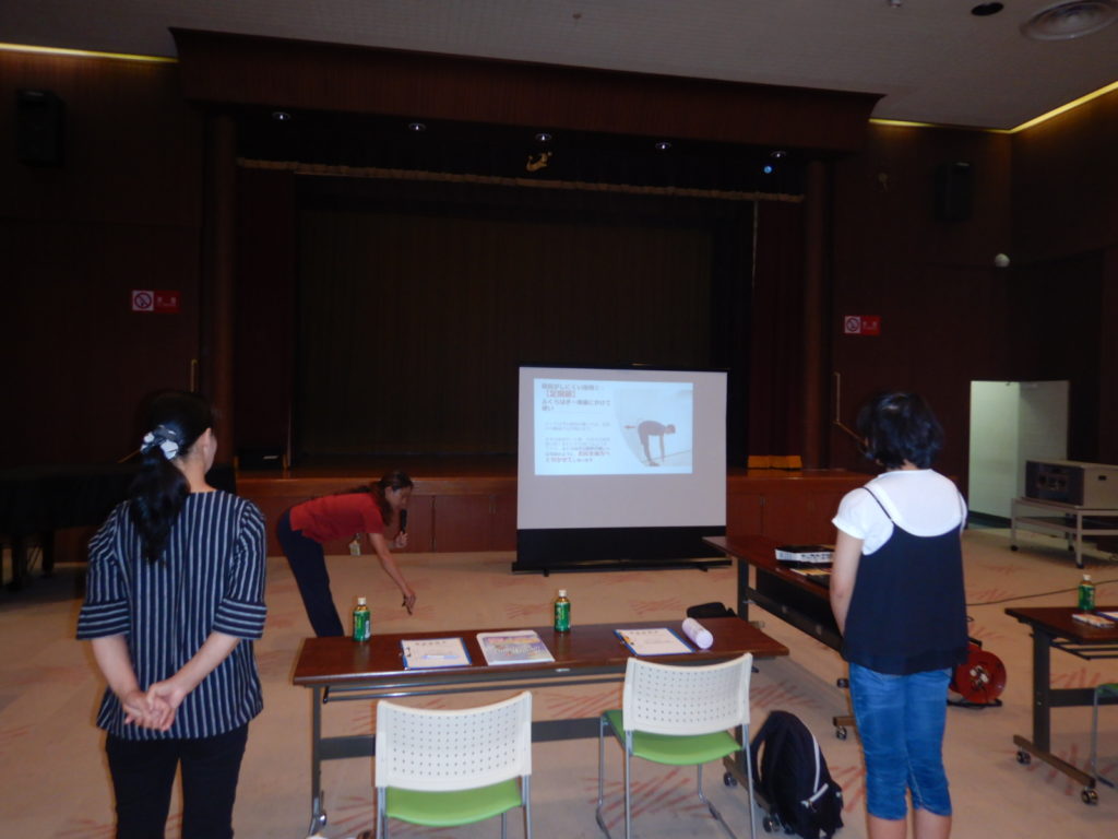 リハビリ専門職の仕事の紹介として、座学だけでなく実際に身体を動かしながらストレッチの体験なども行って頂きました。参加された方々は非常に体が柔らかかったためストレッチの必要がない印象でしたが、理学療法士の仕事の醍醐味でもある『原因がどこにあるのか?』を探す評価と治療(ストレッチ)について体験していただきました。また近年社会問題となっている高齢化問題の対策として当院が取り組んでいる音楽に合わせた介護予防の体操を実践して頂き楽しく体を動かしていただきました。今回の体験教室では個人的な理学療法士のやりがいについても説明させていただきました。今回の福祉体験会をきっかけとして福祉の仕事に興味を持っていただける子供が増えて、将来的に地域を支えるために貢献していって欲しいと感じました。