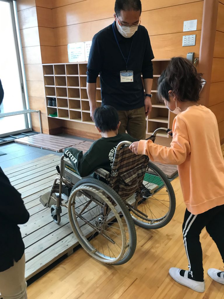 開催内容:車いす体験・アイマスク体験
