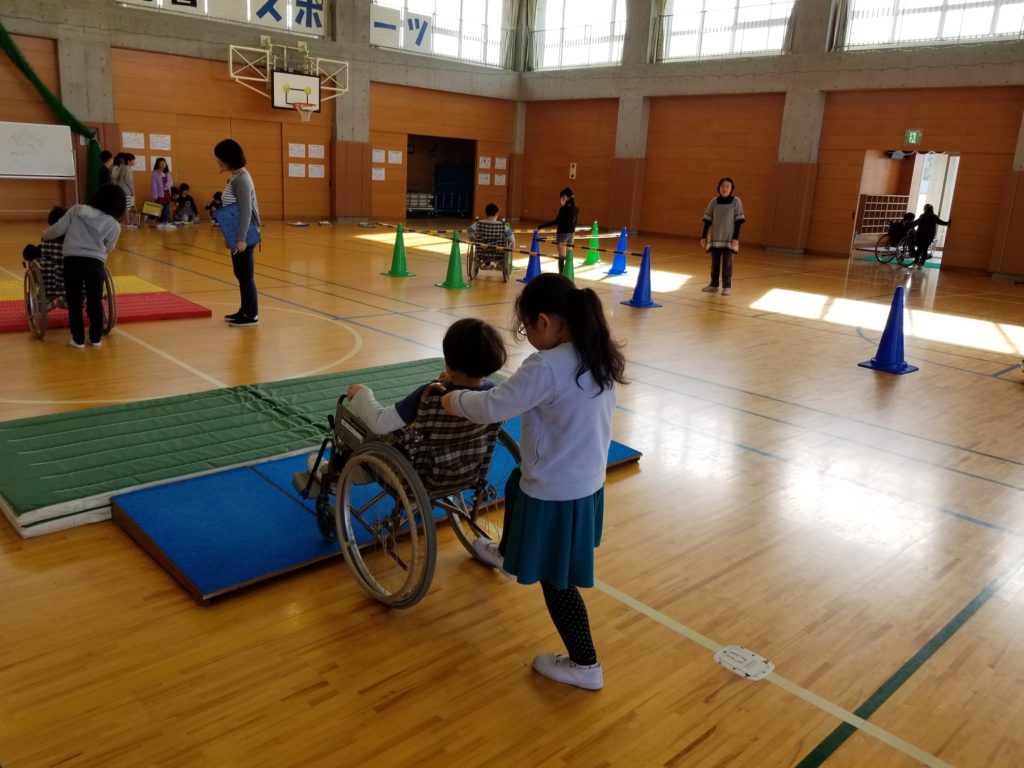 平成30年11月26日、横芝光町の小学校にて福祉体験学習を行いました。朝晩の寒さも厳しくなってきましたが、本日はそんな寒さもふっ飛ばすほど元気な3年生、39名が参加されました。今回は、「車椅子体験」「高齢者疑似体験」を実施しました。