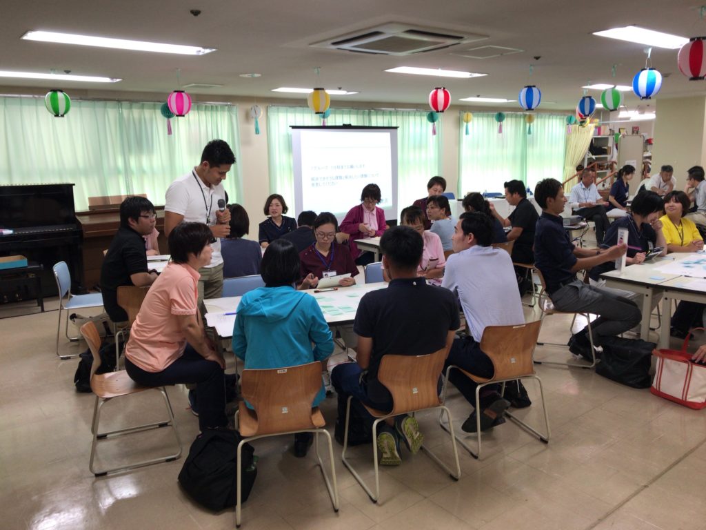 介護老人保健施設つくも苑にて、第1回地域リハビリテーション勉強会開催させていただきました。今回は45名の方々にご参加いただき、千葉県千葉リハビリテーションセンター地域リハ推進部部長の田中康之様に『介護予防・日常生活支援総合事業の効果的な活用について』、茂原市高齢者支援課生活支援コーディネーター渡辺修様に『茂原市のインフォーマルな社会資源について』という内容でご講演いただきました。この内容を踏まえ、『インフォーマルサービスにつなげられない理由』というテーマでグループワークを実施。各地域の社会資源の問題、インフォーマルサービスに繋げるための課題等をお話しいただきました。