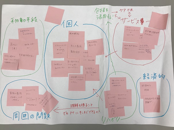 行政、保健師、介護支援専門員、社会福祉士、リハビリ職種の方々の様々な専門的意見及び情報は利用者様の生活を支えていく上で、必要不可欠であると改めて感じさせていただいた1日となりました。 今回ご参加いただきました方々、会場を提供していただいたつくも苑様、ありがとうございました。
