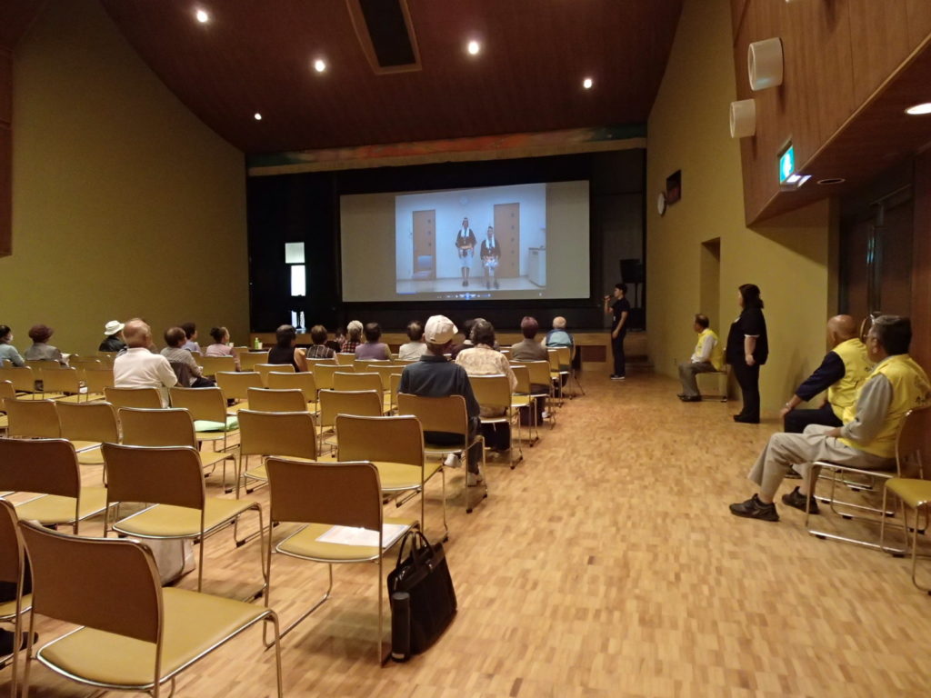 1回目は視聴のみ、2回目は一緒に踊って下さい!ご参加頂いた方々にはそう伝え、実際に体操を動画で流してみるともう1回目で既に皆さん踊ってくださいました!体操→筋力トレーニング→九十九里音頭の順番で行い、膝痛、腰痛、尿失禁、認知症等の予防と聞いて皆さんの意欲は向上!!最後まで皆さんの目の輝きは衰えず元気に踊って頂きました。