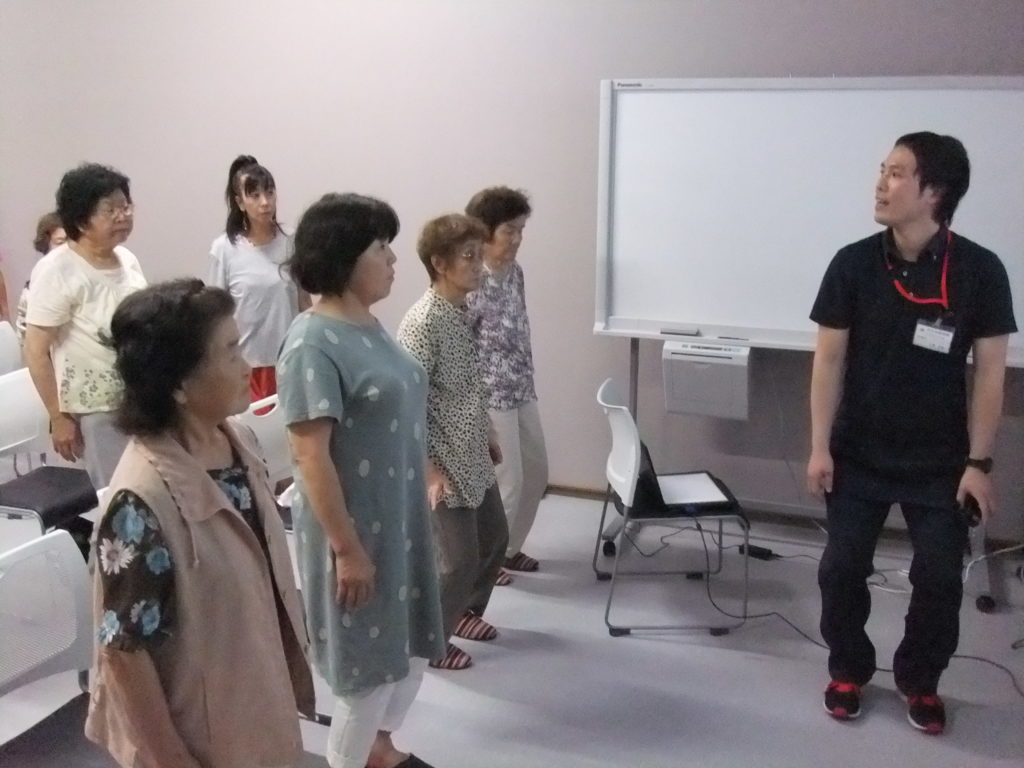 7月22日、山武市松尾蓮沼地域包括支援センターの方々にお招き頂き、健康体操教室を行わせて頂きました。