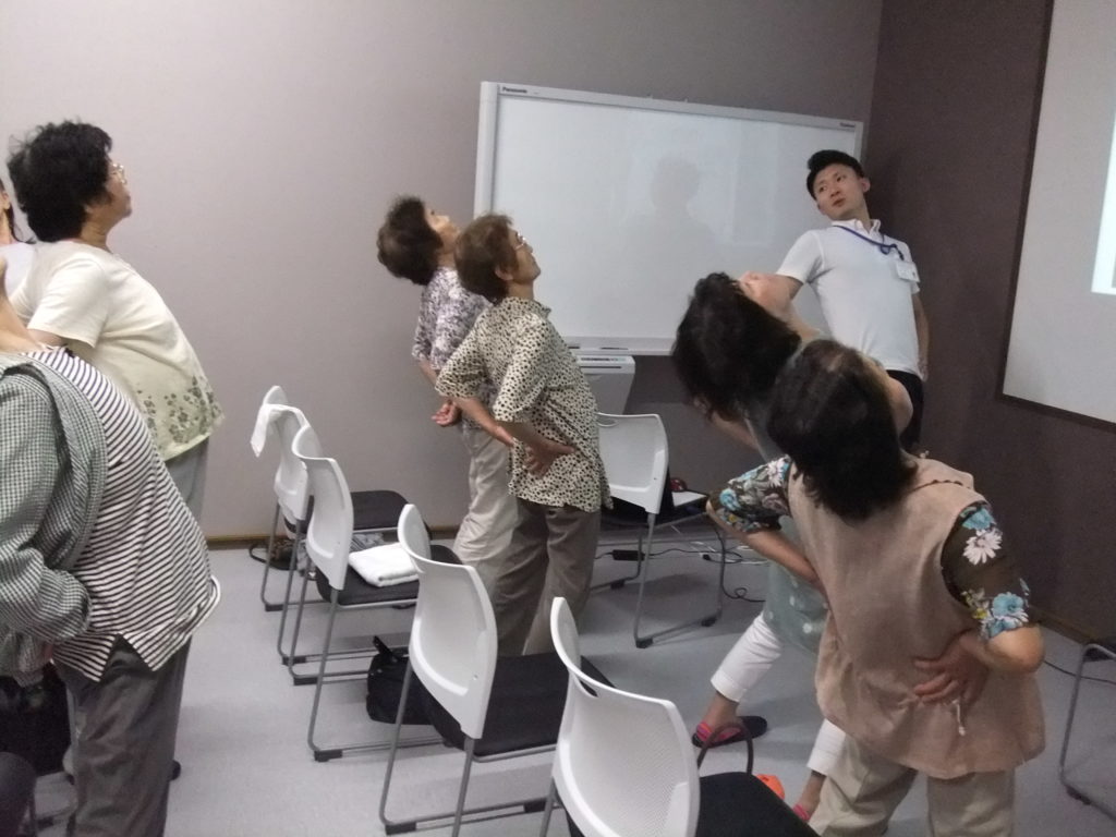 今回の内容としては腰痛・膝痛・認知症・転倒予防について実施させて頂きました。皆様、特に膝痛・転倒予防に対してお困りの方が多い印象を受けました。「正座が出来ない」「立つとフラフラする」等のご意見も頂き、ストレッチ、筋トレを中心とした体操を自己評価を行いながら実施することでお身体の変化を肌で感じて頂けたのではないかと思います。認知症・転倒予防の体操では頭と身体を同時に使い、時には間違い、みんなで笑いながら楽しく運動が行なえ大盛り上がり!!笑顔の大事さを改めて感じさせて頂いた1日となりました。参加者の皆様が健康で怪我なく生活できるよう、今後も微力ながらご支援させて頂きたいと思いました。