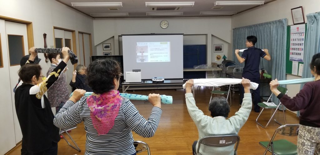 今回は東金市の新極楽寺コミュニティーセンターにて、介護予防の講演を行いました。参加された方々は7名であり、全て女性の集いの場でした。少人数だったため体操のアドバイスも伝えやすく、一つ一つの体操のフォームを大切にしながら実施することが出来ました。